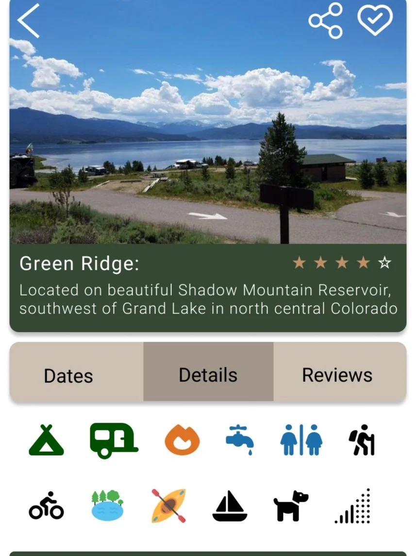 During user interviews I discovered that users want quick and easy ways to see if a campsite has the amenities campers want. To solve this problem I added icons to the main information page of each campground. Campers can see at a quick glance if their campsite has water, restrooms, electric hookups, and other amazing amenities. I also added a feature where campers can see how much cell signal a specific campsite has.